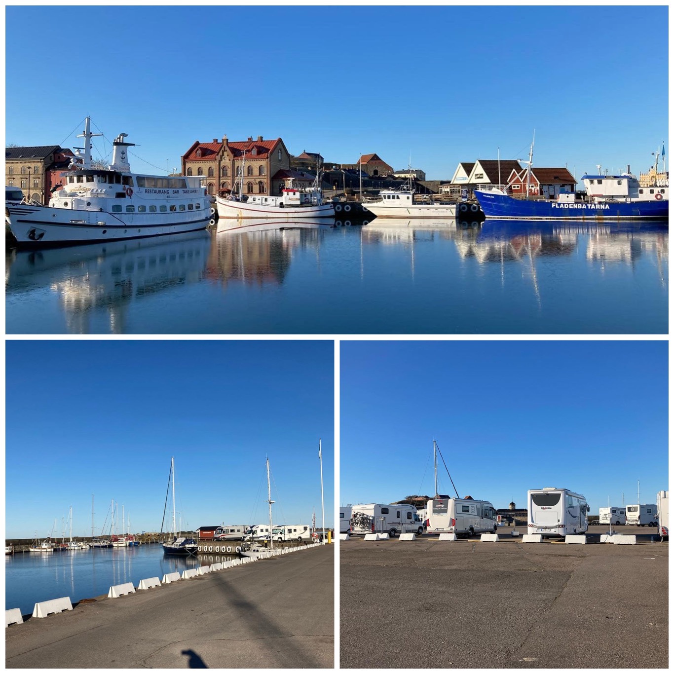 Det är numera två ställplatser här längs kajen. Citycamp och ställplats Najaden som tillhör gästhamnen. Skillnaden är 20kr dyrare på den senare som ligger någon hundra meter närmare staden och som dessutom saknar tömning men har finare toaletter mm service.