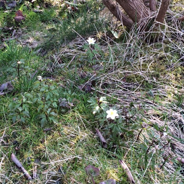 Men längst inne i trädgården under rodedendronbusken har de inte rört något, för där växer våra helt egna vitsippor och ger oss lite vårglädje.