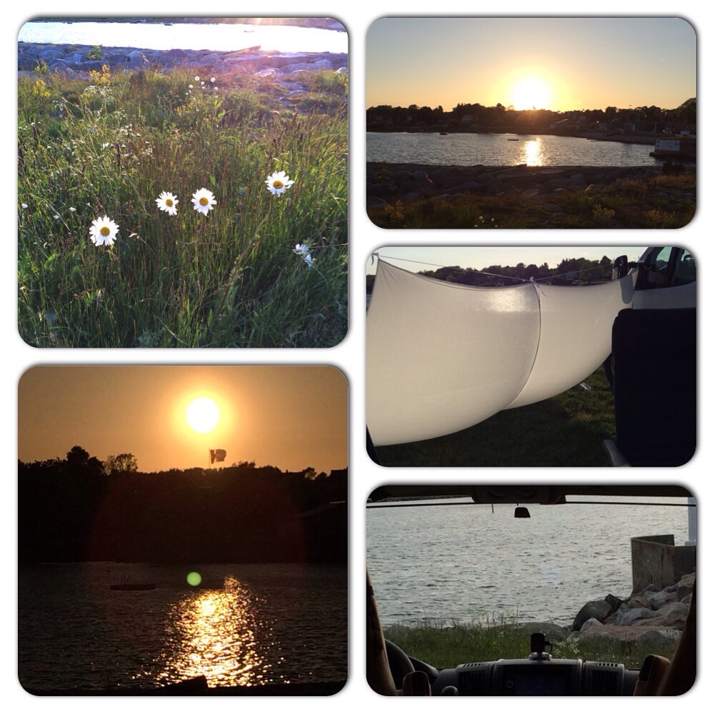 Idag på vägen tillbaka till västkusten körde vi söderut från Sölvesborg, tydligen tillsammans med halva Sweden rock festival 😰 så min ägarinna vände helt om och tog småvägarna norrut…alla vägar bär ju till Rom 😂 och här är vi nu i Varberg på hamnplan på kommunens ställplatser mitt i stan. Helk ok tycker mina ägare under försäsong men att stå här under högsäsong med alla människor som då är i stan och all trafik det då blir och att samtidigt betala 350kr…Det känns lite väl häftigt…
