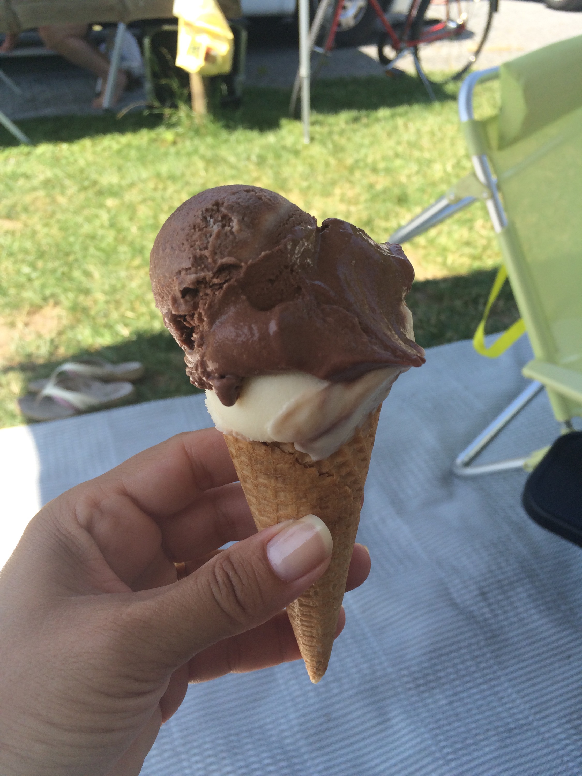 Glassbilen körde in på ställplatsen och självklart skulle alla ha glass i värmen under markisen. 😜 Det händer inte mycket mer än så idag eftersom det redan är sådär 27c.