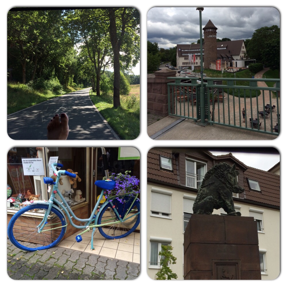 Vi testar väl att köra lite norrut 😂 Varför inte följa nästa flod… Och till lunch var vi i Hann. Munden. Ännu en mysigt stad med massor av korsvirkeshus och annorlunda utsmyckningar… Som denna cykel med virkad klädsel 🙊