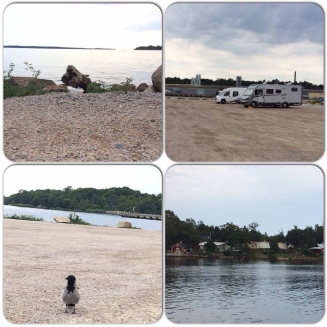 Kanske inte den mest romantiska ställplats men läget är otroligt vackert och lugnt, här har man känslan av att vara nära sjölivet. Att det sedan är en fabrik (tarkett) bredvid stör inte alls och man behöver ju inte titta åt det hållet. Servicen finns en kilometer 😳 bort i småbåtshamnen, men vi har el och vatten och jag har ju en inbyggd toalett så vad mer behövs?