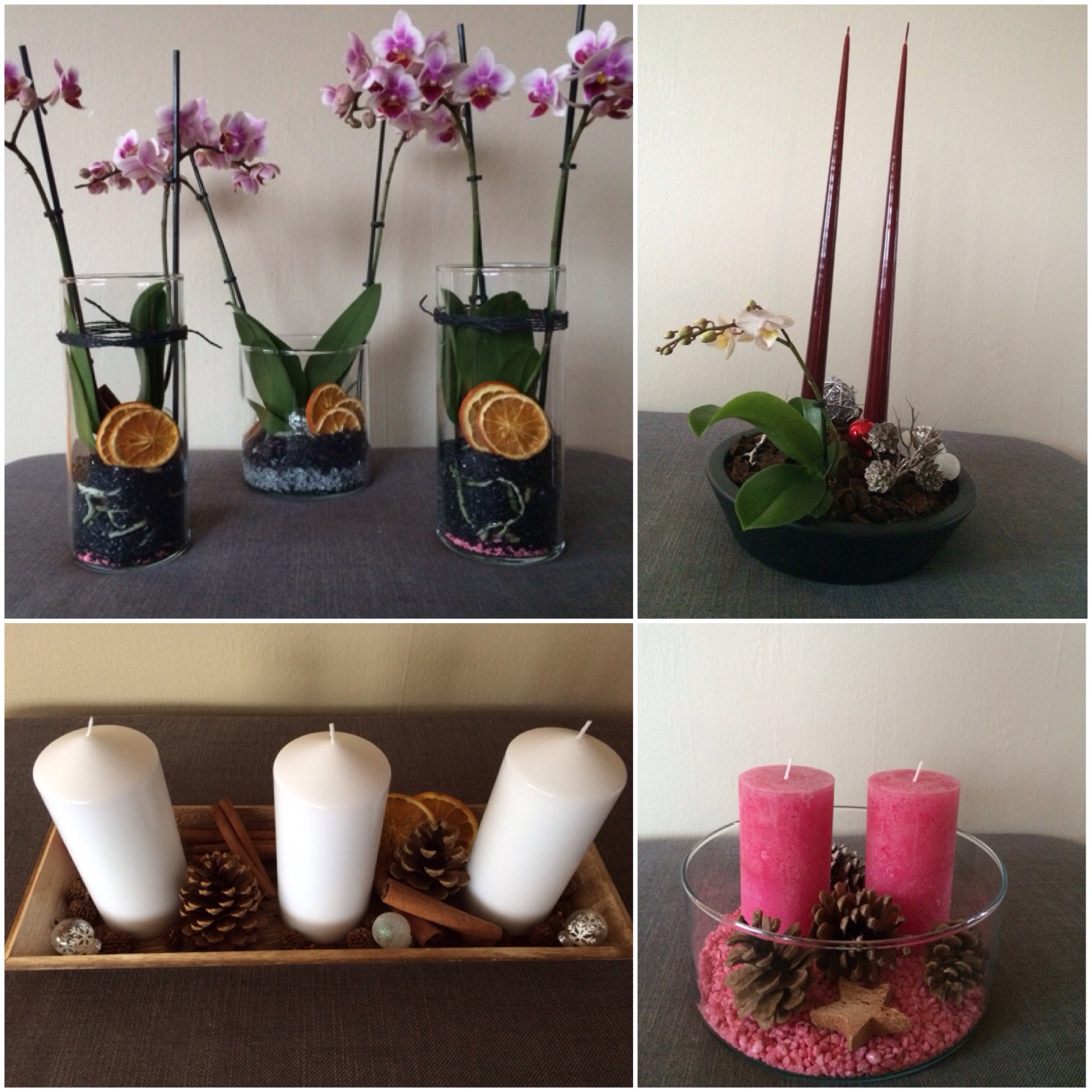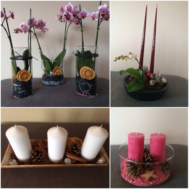Hon har varit kreativ och gjort ljus och blomster arrangemang…
