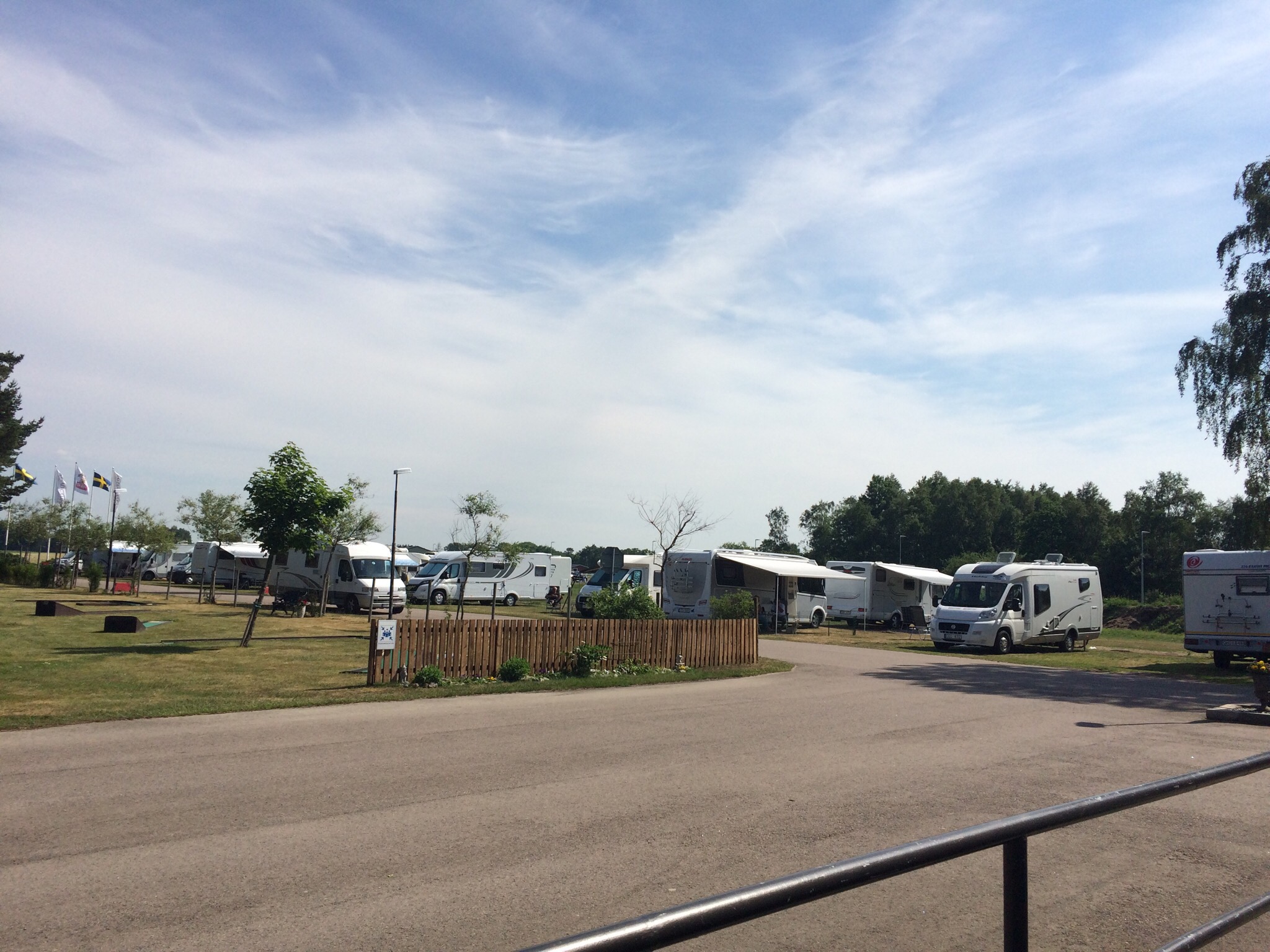 Här på Båstad camping finns fin stor ställplats med el utanför grindarna men med tillgång till campingens alla faciliteter.