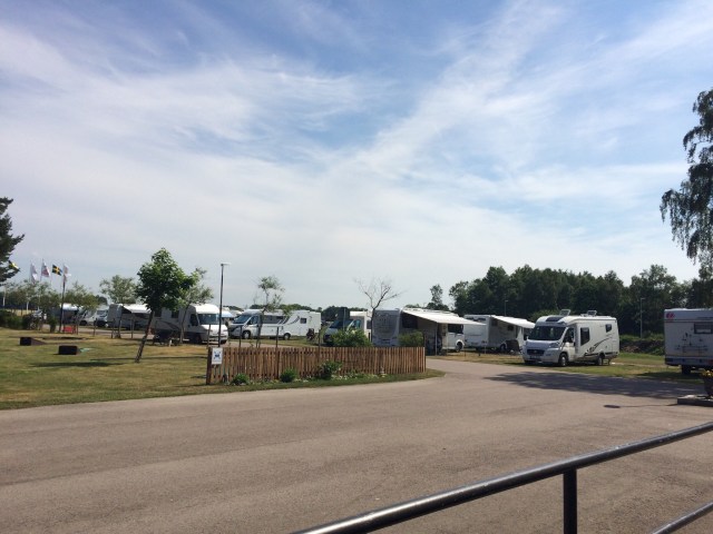 Ställplatsen har vuxit till två rader sedan i höstas och dessutom finns ställplatser utan el inne på campingen till ställplats pris 😊