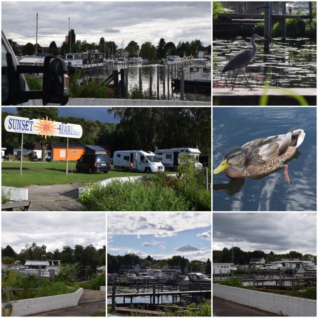 Här parkerades jag vid sunset marina vid Spandau i Berlin. Det lovades dusch och full service men vi hittade endast toalett, utedusch och toatömning. Men det fungerade för oss som stopp på vår väg söderut och samtidigt som en vilodag med fin utsikt. 😂