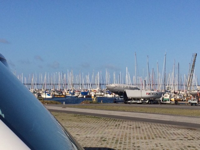 Från Hyssna körde vi raka vägen söderut och stannade i Limhamn för en övernattning. Vindarna ven så att hon hade träningsvärk när vi kom fram, och att åka båt i den vinden, det ville hon inte…
