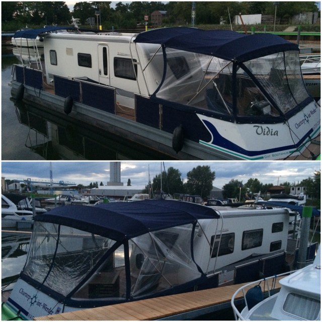 Här i hamnen hade någon kommit på den briljanta idén att bygga ett flytande sommarhem av en flytpråm och en husvagn 😳😂 allt klart bara att sätta ihop som en Ikea bokhylla 😁
