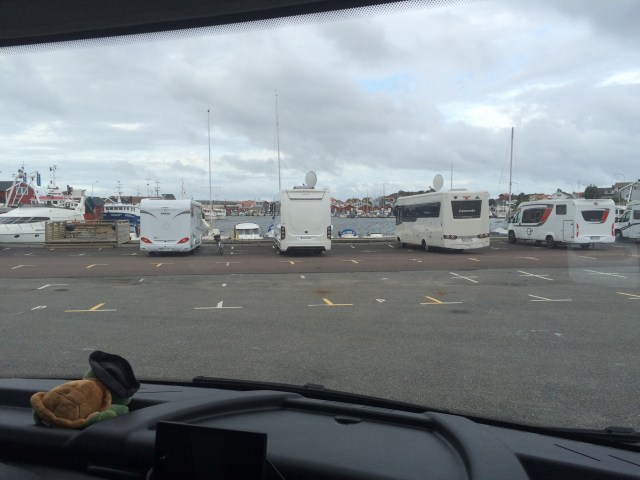 Hon hade varit på fest med jobbet ute vid nya varvet, så jag och mannen i familjen fick ju ställa upp och hämta henne. Sedan körde vi raka vägen (hela 30 minuter) till Hönö / Öckeröfärjan. Ute var det svart som natten och blåste ordentligt men vi hittade fram 😊