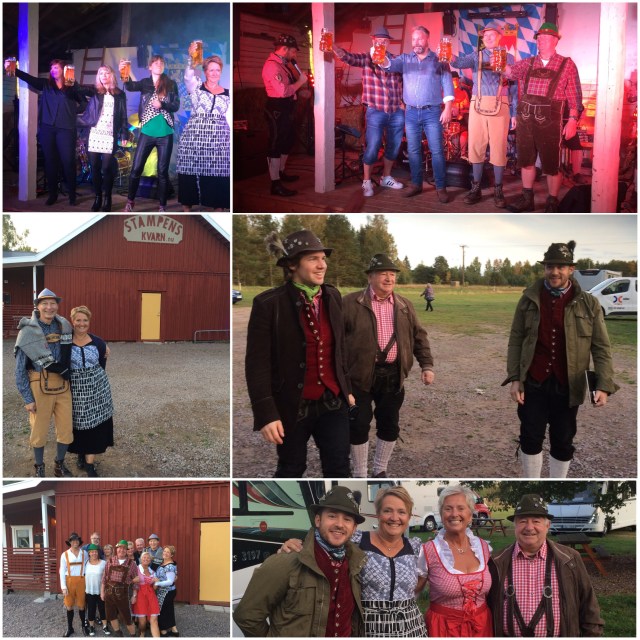 Efter en underbar dag i Hjo samhälle samlades våra ägare (sa jag att vi är fem HB kompisar på rad här med två ägare var…) med sina stolar i solen. Det skrattades och pratades resor och HB’n tills någon tyckte att det började bli dax för mat. Då blev det fart på folket…de skulle piffa till sig och hoppa i sina oktoberfest kläder 😂 såååå fina de blev…