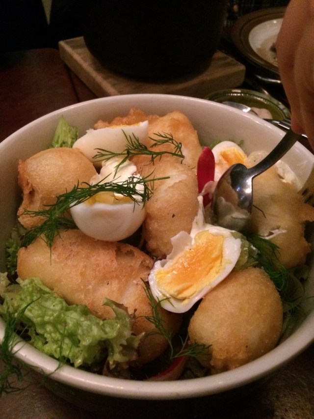 Torsksallad, vildand och krispig king Edvard.