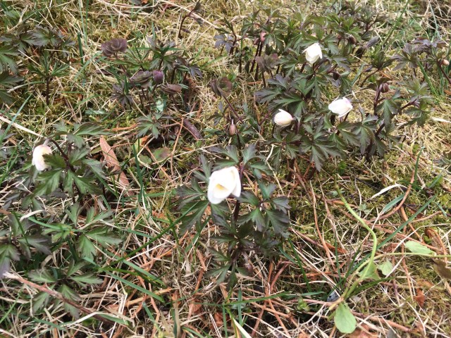 Trädgården rensas från hösten och se vad som kommer fram under en rododendron. Det är våren som kommer… 😁