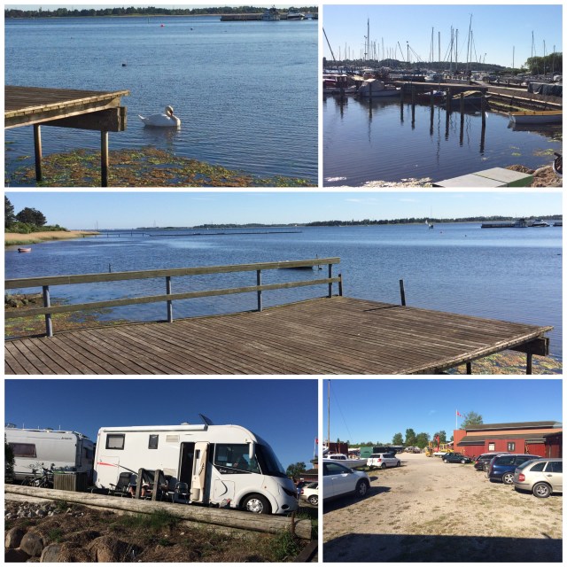 Det såg trångt ut mellan bilarna men damen i båttillbehörsbutiken sa ‘ställ er där ni vill och får plads’. Vi ställde oss på första parkett med en mindre romantisk baksida, men vem ser väl den när man sitter på solsidan och njuter av havet. Efter cykel och shoppingturen hade en dansk HB klämt in sig på en ännu trängre plats bakom oss. 😬