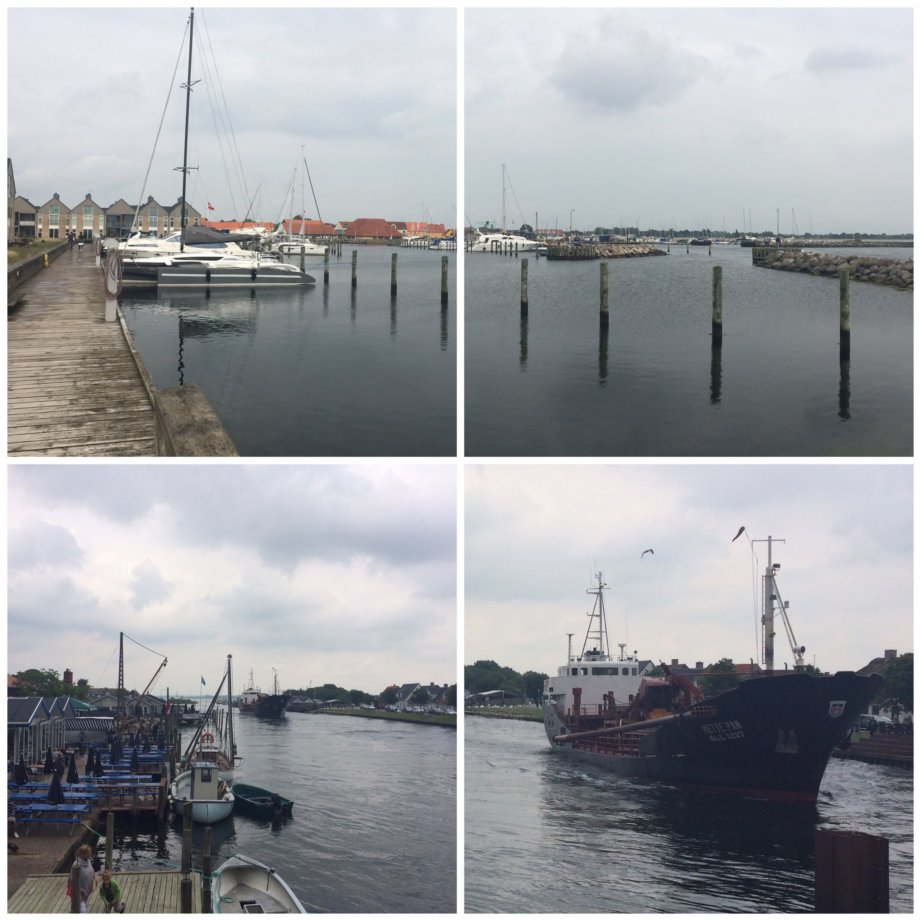 Tillbaka genom karrebaeks småbåtshamn (yttre hamnen) och över bron till Enö där vi står.