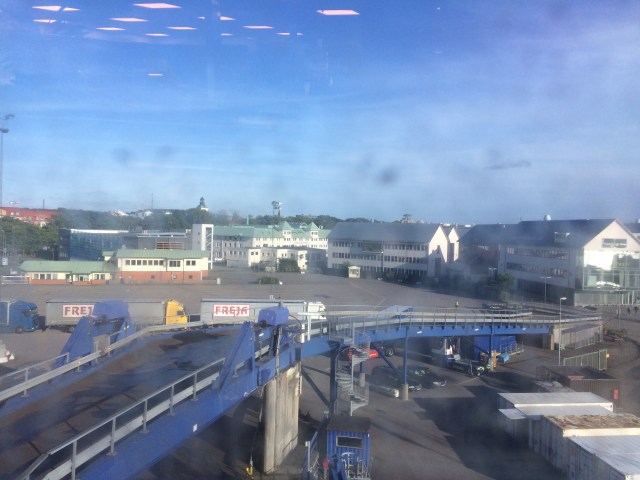 Efter tre dagars arbete är mina ägare lediga i några dagar för att ta mig på nya äventyr. Eller för att jag skall ta dem på tur 🙄 och vilket det än är, så är vi nu på väg. Vi lämnar Varbergshamn med Stena Line (utsikten från ett smutsigt restaurang fönster)