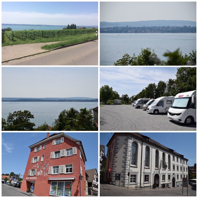 Tillbaka till dagens händelser… Vi lämnade Lindau i morse för att köra mot Friedrichshafen men någonstans på vägen ändrades rutten till Meersburg. Tur för henne som körde att det var lååååånga köer så att han hann ställa in gps’en till ny adress. Från en tysk grusparkering till en annan… men den i Lindau var verkligen bara en parkering för där fick man ha typ en meter mellan bilarna. Här har vi gott om plats eftersom vi har elstolpen mellan oss och grannen. Vi körde in i ett vindistrikt med vinrankor högt och lågt längs kullarna. Mina ägare lämnade mig här uppe på ställplatsen och begav sig hungriga ned mot stan. (De hade tvätt-tid idag 12:00 när vi kom fram😬😂, eller i alla fall så skulle hon tvätta all smutstvätt då vädret var perfekt för det)☀️😎