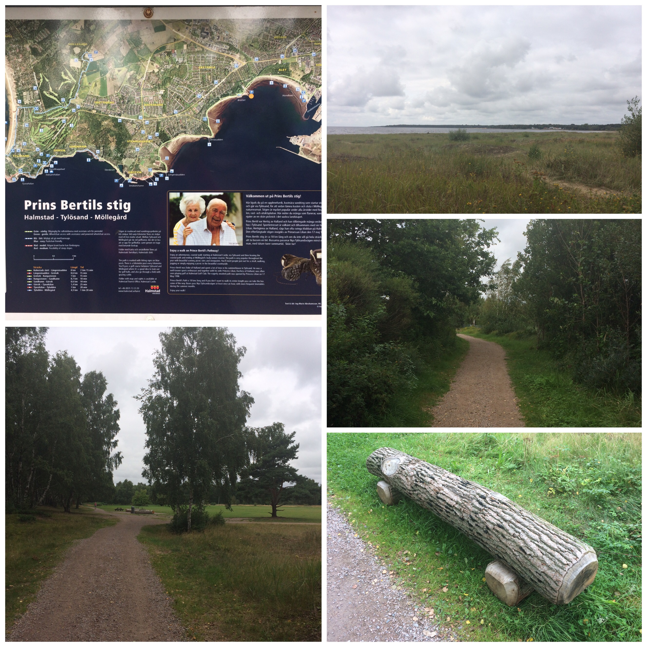 Prins Bertil stig går hela vägen från stan till Tylösand och lite till. Idag tog mina ägare delen längs västra stranden nästan upp till Grötvik förbi brottet, alltså utebadet och upp till Ica för att inhandla frukost och picknick lunch.