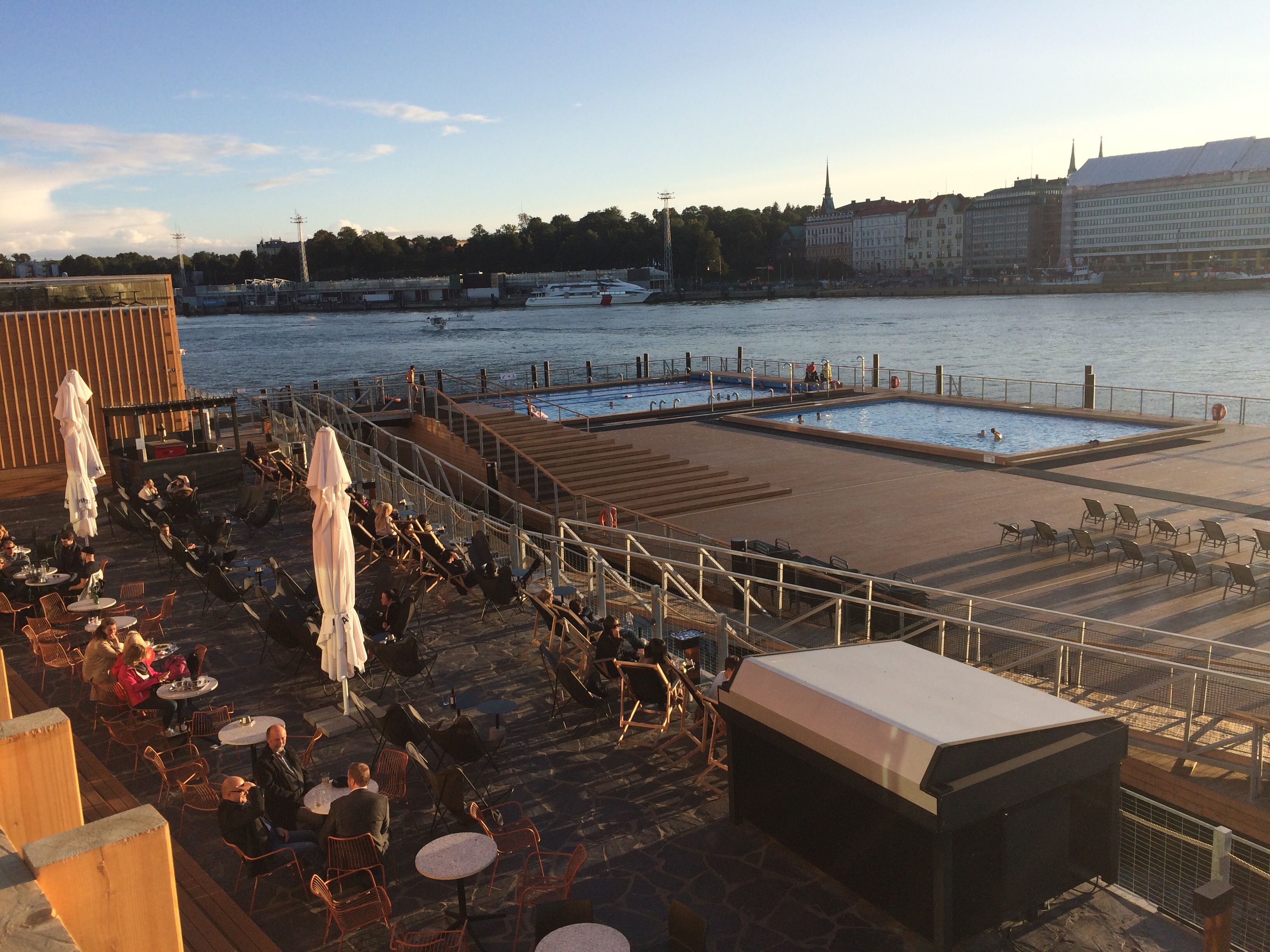 Tydligen hade man byggt en ny pool i hamnen mellan Vikingline och Siljalines terminaler, precis vid torget.
