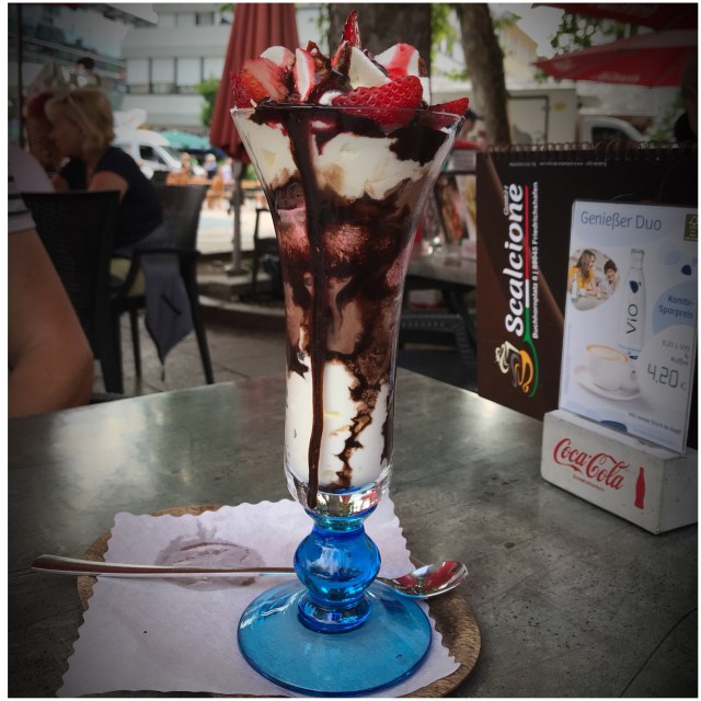 Nu har mina ägare hunnit återhämta sig från cykelturen och jag har blivit ”omplacerad” i Friedrichshafen för lite stadsvandring och shopping. (Hon hade av någon anledning bara fått med sig tre klänningar totalt🙄 övertrött kallas det 😳)