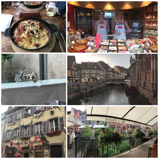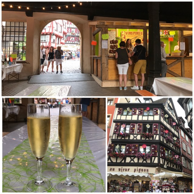 I Colmar smakar man på de lokala vinerna på en ‘vins fins de Alsace’ om man inte vill åka ut till närområdet och besöka vingårdarna istället. Man kan sitta där och prova sig fram och se på alla turister som fotograferar alla husen omkring.