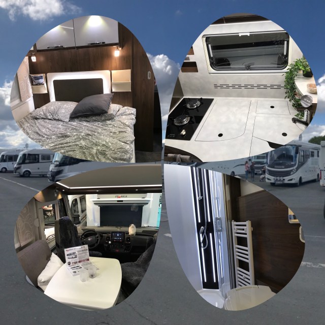 Istället för kök vid skjutdörren var där en bänk. Utifrån var bänken skåp för två gasol flaskor. Inne blev den en härlig öppen yta med sittplats. Mina ägare tänkte att våningssängen kunde vara bagage och soffa bak i bilen om man tog bort överslafen. Absolut nya plåtis favoriten! Sedan var de tillbaka till Niesman och Frankia och i år vann Frankian, men tyvärr fanns denna utförande endast som boggie… fullbred franskbädd med badrum längst bak. Mina ägare tyckte att denna kunde varit en favorit i lyxmodellerma om den hade funnits som åtta metare…