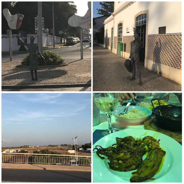 Staden Tavira då? Ja en liten sömnstad med både shopping (allt i kork) och shoppingcentrum. En militäranläggning och en ställplats(?) på grusplan. Maten och vinet smakar och hon vågar sig på lokala specialiteter…
