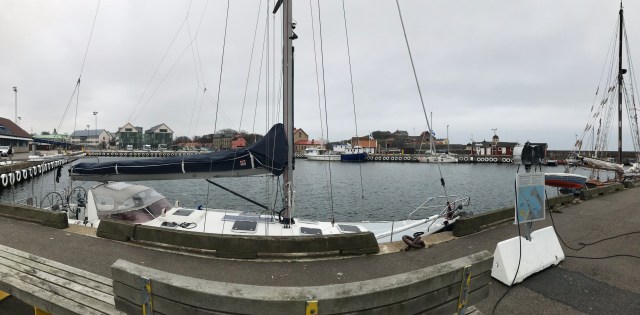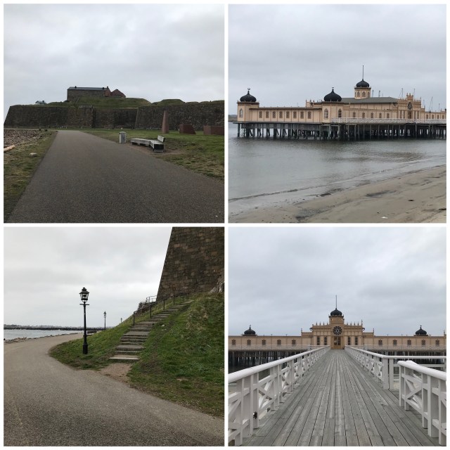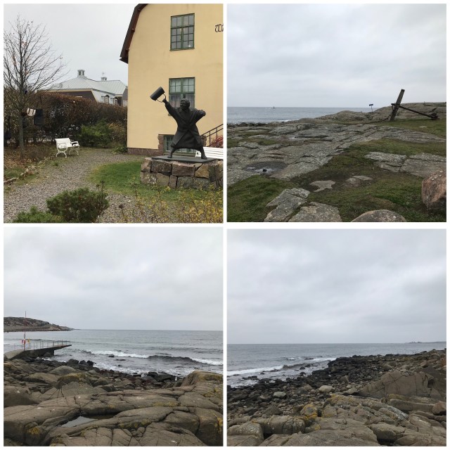 Efter en lång och mättande frukost tog jag mina ägare tillbaka till Varberg imorse. Det fanns lediga platser ute på kajen, så jag parkerade och de gav sig av till stan. Ett nytt lunch ställe testades, blå dörren, och fick med beröm godkänt av mina ägare. en härlig promenad i ett blåsigt Varberg stod på schemat, först liten stads runda, lite ny konst på torget och sedan drog de iväg mot apelviken. Från apelviken kom de tillbaka mot stan på havspromenaden. Havet brusade som vanligt i blåsten, men med så lågt vatten som det är idag blev vågorna inte så höga. Förbi fästningen och vackra kallbadhuset, där folk faktiskt badade (näck) även idag. 😬