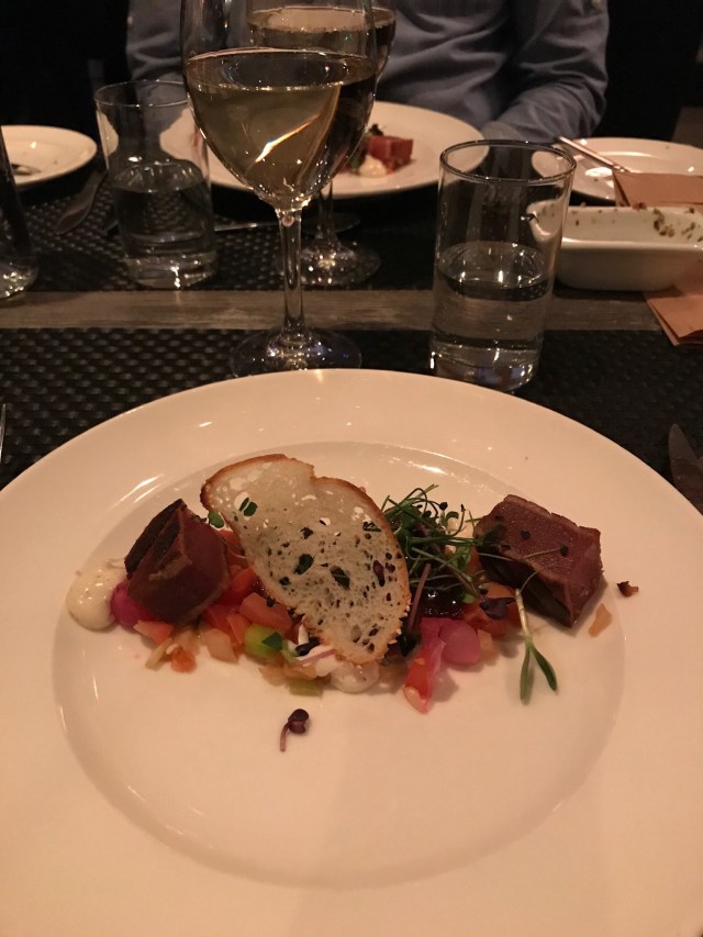Sedan trerätters middag, som hette duga, såååå gott, men servitören glömde fråga oss om vi ville ha mer att dricka så vi fick jaga honom istället, för att få rött vin till huvudrätten.