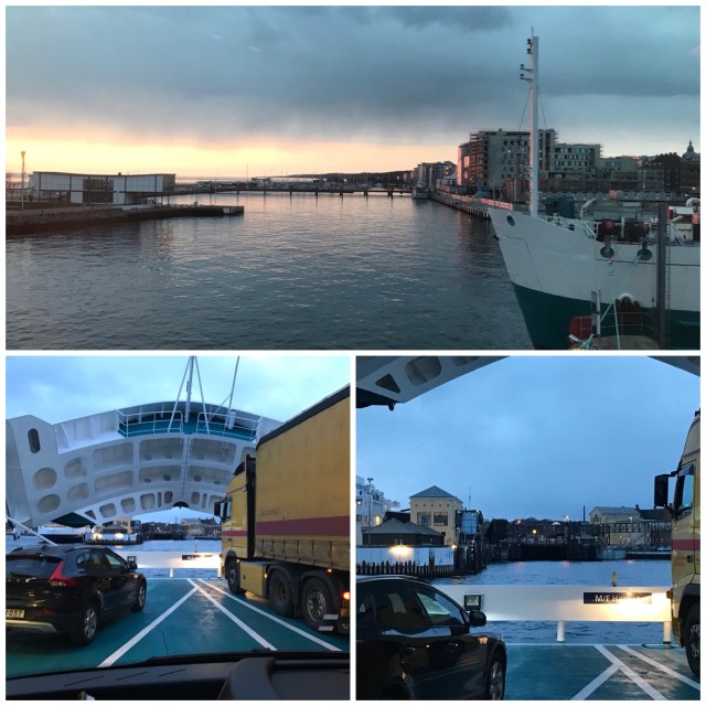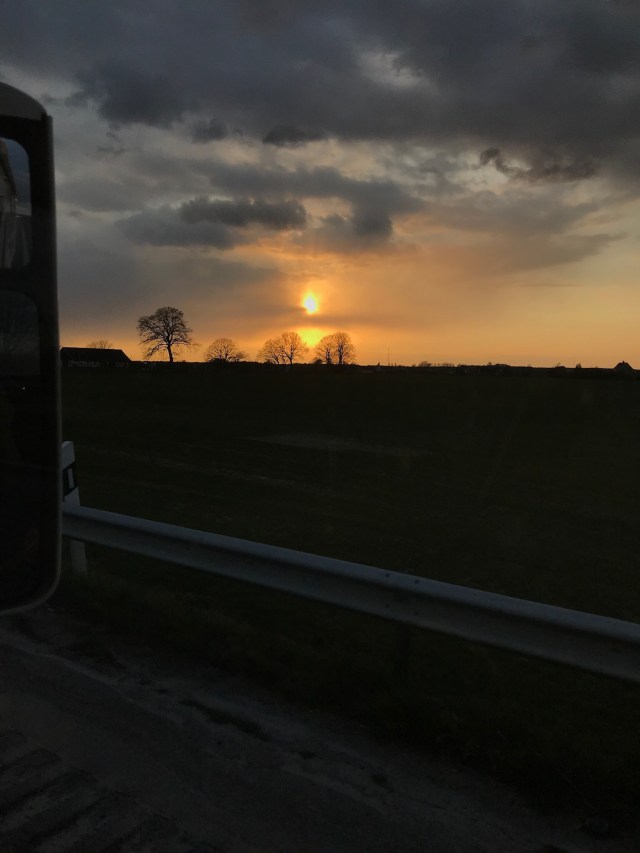 Fredagskväll och mina ägare skyndade sig hem från jobbet. Snabbt ombyte, sista sakerna i mina skåp och sen var vi på väg 😍Det blev många mil söderut på motorväg. Dudunk, dudunk, dudunk, på E6 genom Halland. Ibland tom värre än i östra Tyskland. 🙄En helt underbar solnedgång i väster. Inte många ute denna iskalla vårkväll. Bara två HB’n i Helsingborgshamn. 542kr med AutoBizz smart över till Danmark med 7,5m 4250kg HB, typ samma som Öresundsbron med brobizz, men vi gillar att variera oss, så vi har bägge. 😊