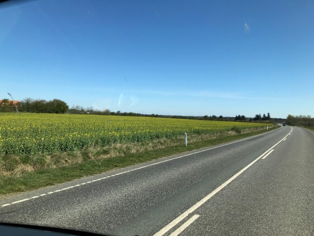 …på de danska landsvägen. Helgen har varit underbar på öarna. Solen och värmen har bränt de flesta till att likna kräftor men även fått naturen att blomstra. Allergitabletterna går år och grönskan slår ut med hela sin kraft, så även vårrapsen.