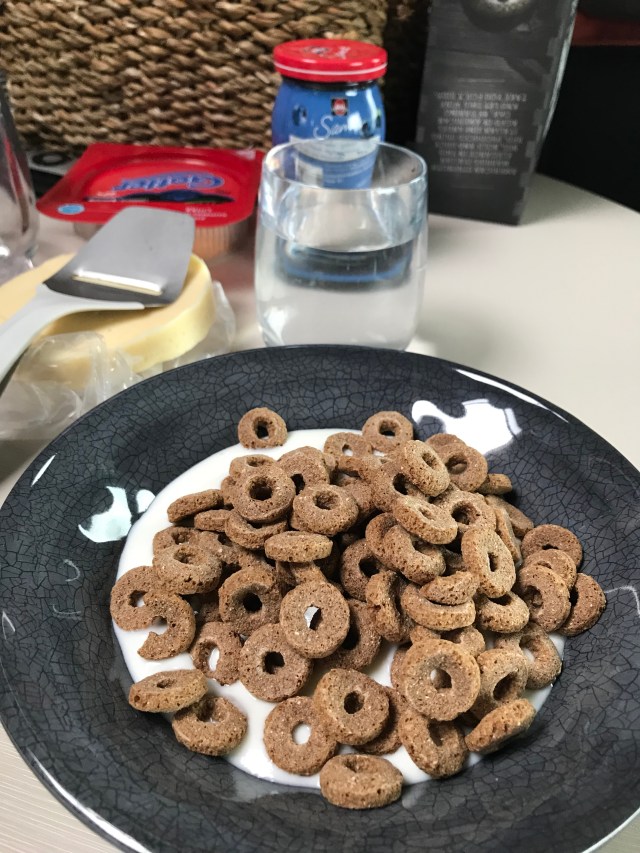 Det skulle vara havreringar med yoghurt…ser mer ut som hundmat 🙄. (Hon var inte nöjd kan jag lova 😬😖)