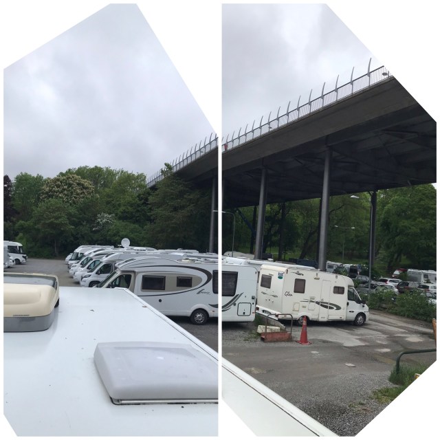 Ja vi hade ju betalat för platsen så…Det finns två bra ”områden” om man skall stå här längre tid. Den vi står vid, vid vattnet och den jag fotade mot fotbollsplan för där har man gräs bakom sig. Annars är detta bara en grusplan uppdelad i platser. Men området är perfekt.