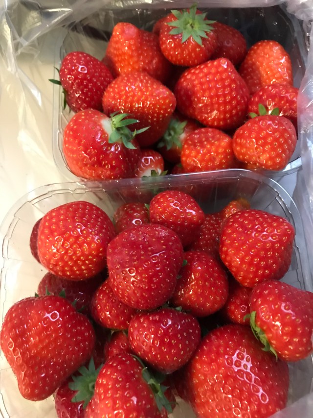 Ett lass goda jordgubbar inhandlades ihop med några förvaringslådor från Ikea. Lunch hos mig hanns också med innan köerna släppte.