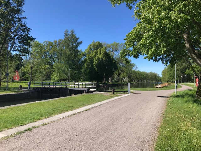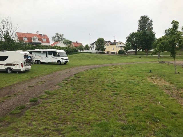 Det är skönt att inte behöva köra för långt under en dag så vi körde bara till Linköping. Här finns en stor ställplats på gräs vid Bergs slussar.
