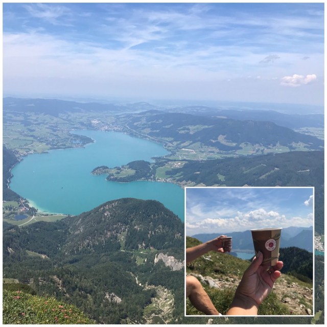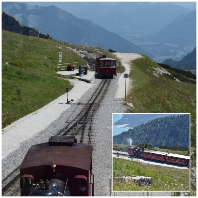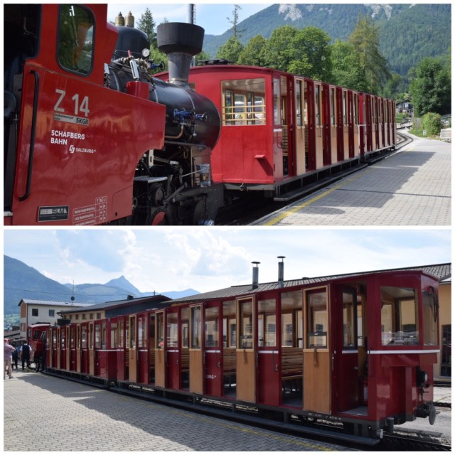 Ut med cyklarna och full fart mot schafbergbahn 🚞 som skulle ta dem 1500 höjdmeter nästan rakt uppåt 😳 för 36 euro t/r per person 🙄.