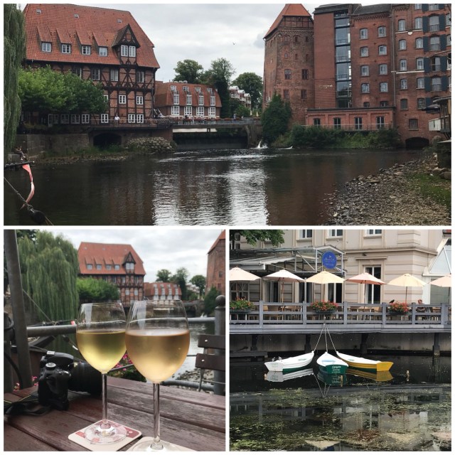Norrut var det bestämt, 14 mil är väl en lagom bit att åka tänkte mina ägare för nu skall vi se norra Tyskland… Men skall det behöva ta 2,5 timme på motorväg 😳. ALDRIG sa hon som nu satt vid ratten, jag kör gamla vägen! Lika lång tid det…men hellre rulla i 70 bland skog och byar än att ligga på rull på stau på motorväg. Så vi körde hit till Luneburg längs vackra ekskogar och genom mysiga små tyska byar. Att vi skulle till en riktig ställplats det visste vi, att vi skulle till en gammal stad hade de oxå koll på. Men att vi skulle till detta vackra! Det hade ingen berättat!Från gamla skolbyggnaden (helige andens grundskola) till bänkar var perfekt utsmyckade och allt väl bevarat. Varenda byggnad hade något speciellt. Spelade ingen roll om man såg till höger eller vänster, överallt fanns byggnader man ville föreviga. Ingen kamera idag…men han tog med den och tur var väl det!Stadens spa-hotellkomplex bestod av flera gamla byggnader som är välbevarade och renoverade till perfektion. …alla byggnader på den nedre bilden hör till Bergström hotell. …och där på övre bildens servering satt mina ägare och provade vita viner…