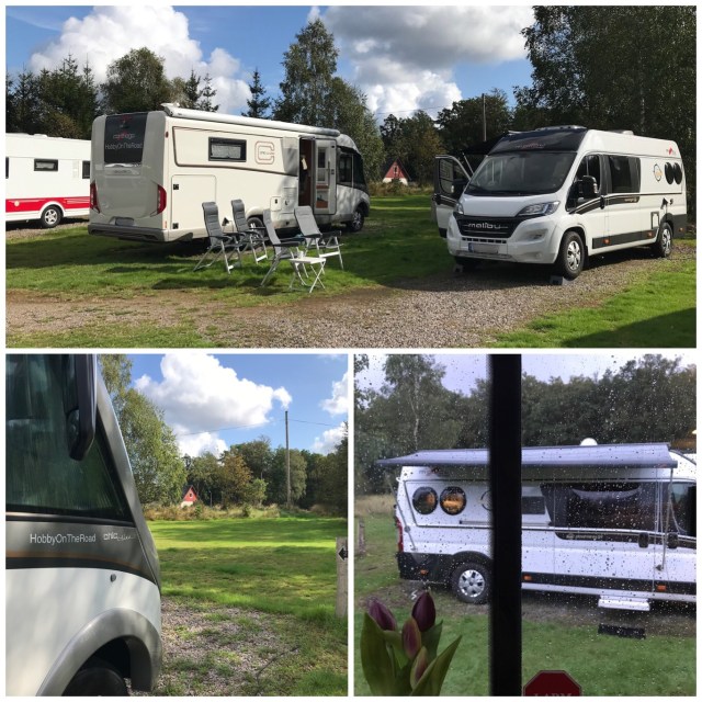 Mina ägare tycker om att komma ut i naturen och det gör man här på Persköps ställplats. Vi landade på vår plats och väntade in våra vänner…Mitt under regnskuren backade en plåtis in på Rapidos plats. Men mina ägare hann aldrig bli irriterade för han sa, kolla in i framsätet, det är säkert våra vänner som bytt HB… och så var det! De har ”down sizat” sig till min lillasyster Malibu plåtis utan att säga något, precis samtidigt som mina ägare bytte till mig Carthagon. 😂