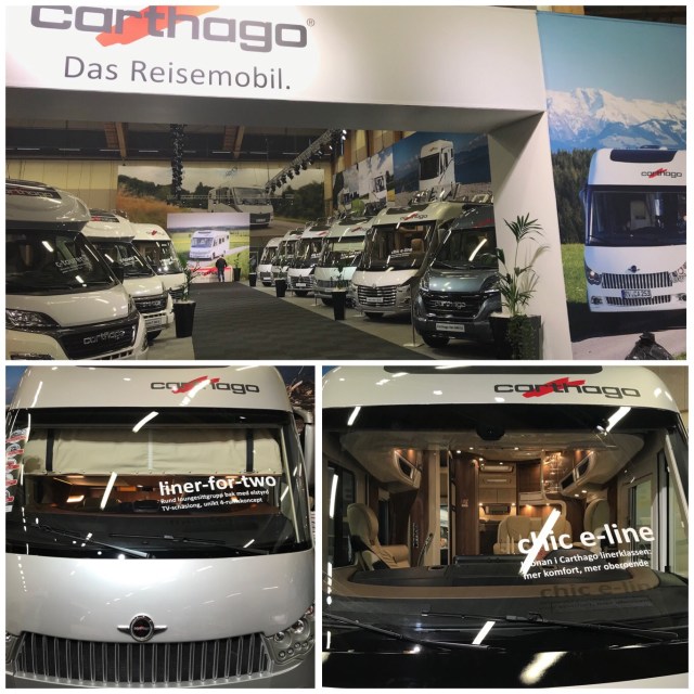 Mina ägare lämnade mig här på min plats på ”hyllan” på Rosenlunds bankar och begav sig in på mässan. Självklart började de hos Forsbergs eftersom de varit deras leverantör av två husbilar. Här fanns som vanligt Concorde, Frankia och Niesmann i alla möjliga olika utföranden. Kanske orkar de se lite mer inne i bilarna under helgen. Niesmann hade dock en detalj som de noterade…specialtillverkade utdragbara lådor på räls i dubbelgolvet. Detta kommer mina ägare att utforska mer. Självklart var Carthago deras nästa besök då Bengt i Örkelljunga fått leverera mig till dem för någon vecka sedan.