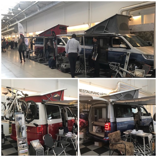 E-linern hade vissa snygga detaljer som hon fastnade för. Men oxå något som förbryllade… den som designat sopebingens placering lagar nog inte mat! Vem kan komma åt den inne i ett skåp med ytterligare en dörr med kladdiga händer?Därefter blev det promenad runt runt inne på mässan…Två nya Brunner muggar från danska DCT. Kaffe paus hos Fiat……en titt på WV’s Caravelle… De lyssnade även på FreedomTravels föreläsning om deras husbilsresa i Estland. Mina ägare har ju funderingar på Finland och Baltikum, så detta kom väldigt lägligt. Självklart fick även Laika ett besök. Där blev det ett litet extra stopp hos deras pizzabagare som ju bakade det godaste mellanmålet 😍Även tillbehörstältet fick ett besök där Parmesan och Gäseneost fick följa med hem.