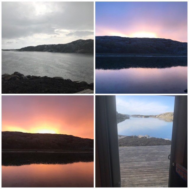 Från regn till en underbart vacker solnedgång som först var blålila och minuten efter blev som ett rosa eldhav.