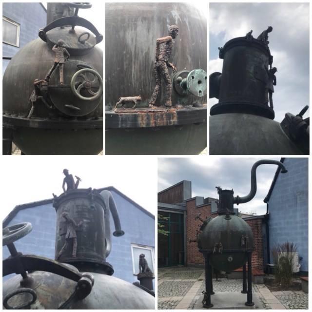 Gamla svenska absolut vodka fabriken hade kul konst vid sin entré inne i staden.