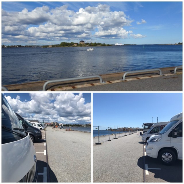 Väl framme klockan nio såg vi att även parkeringen numera blivit ställplats, man hade markerat platserna med nummer på gatan. När vi kom och såg HB’n byta plats så snart någon tänt lamporna på den ordinarie Ställplatsen, för att få el platserna, tänkte vi att vi får nog ta nästa ställplats. De vände på huvudet och där fanns en ledig plats! Längst fram!!