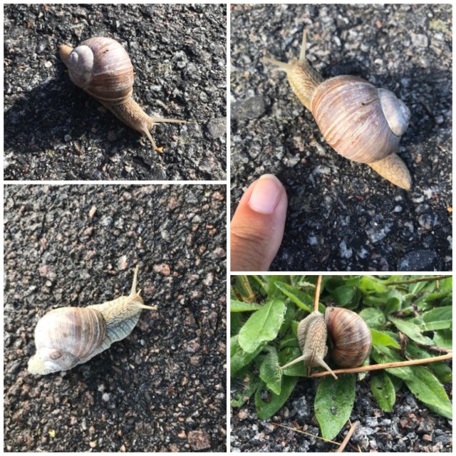 Mina ägare hittade massor av jättestora sniglar som var betydligt större än hennes tumme 😬 med stora fina snäckor på ryggen. Såg ut som fin mat…🤭😅😂😂