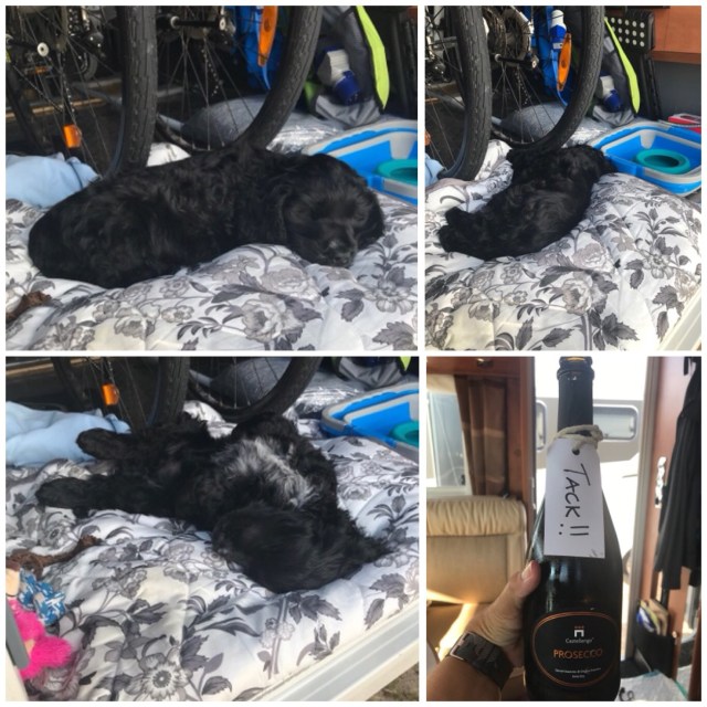 Eftersom det är kisspaus på natten och morgon toa och mat vid sju, så är nu mina ägare bland de första upp på morgonen. I morse hade hon dock sällskap av en manlig hundägare som sprang efter sin hund runt Ställplatsen i kalsongerna 🙈🤭😂