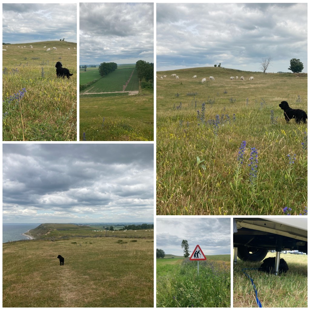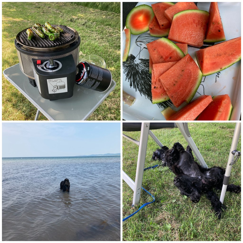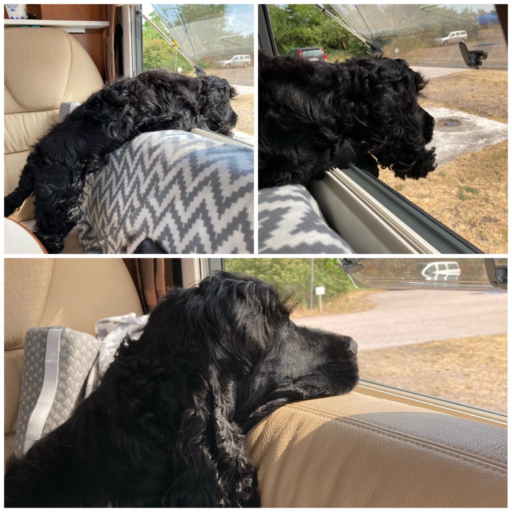 Hundarna var inte välkomna någonstans på hela stranden så de fick ta bilarna till andra stranden 15 min bort för bad. Men där var nästan finare! Det blir nog inte First camp i Åhus nån mer gång utan privat stuga med plats för husbilen på tomten.