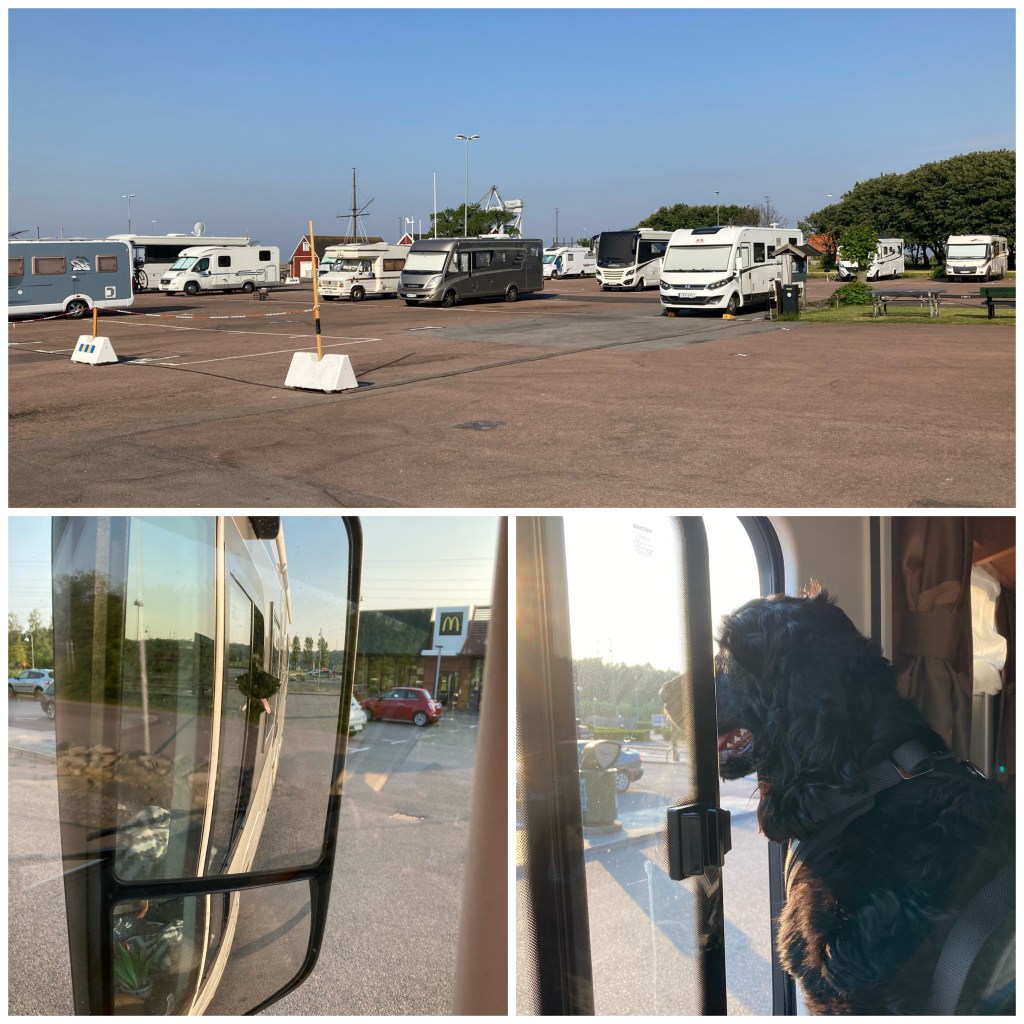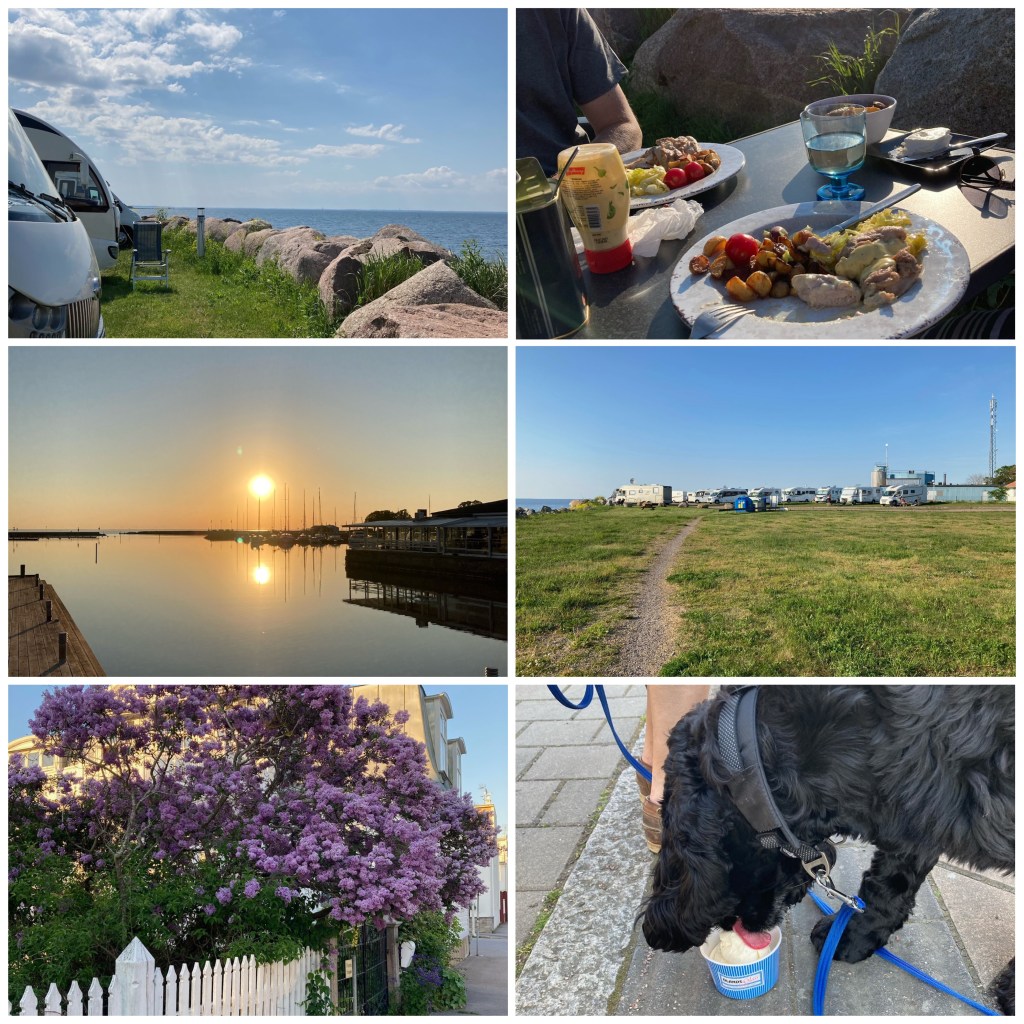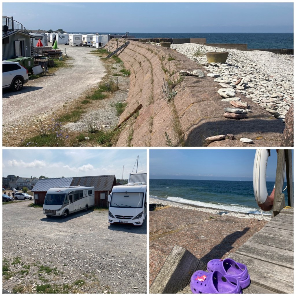 Väl i Åhus parkerades jag i dagarna fem…på First camp. De hade bokat en ställplats för mig inne på campingen men jag fick en plats närmare stugorna istället. Här skulle familjen mest hänga med barn och barnbarn och endast sova hos mig (dyr övernattningsplats för 2600kr). Men vad gör man inte för lite familjesemester 🙄😅