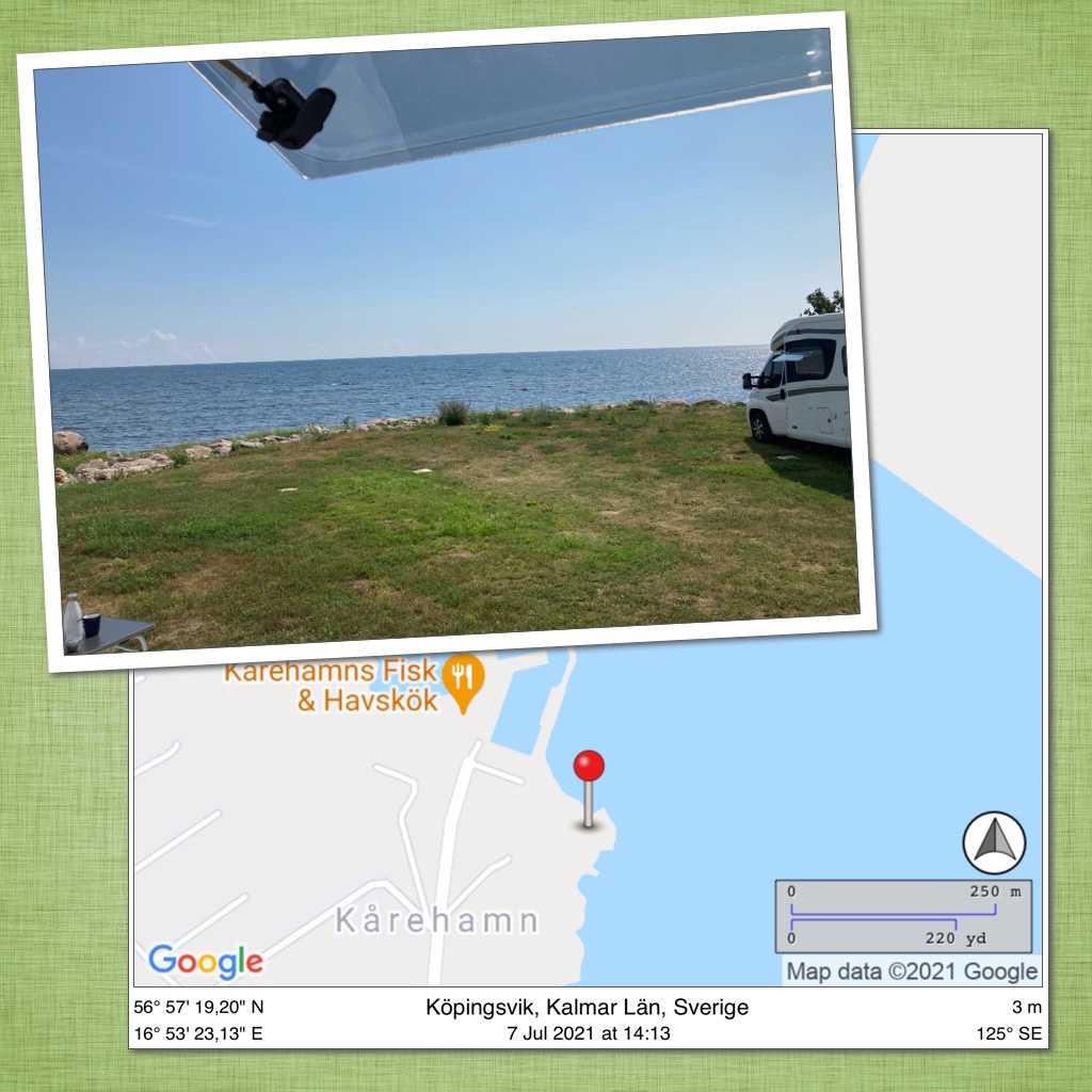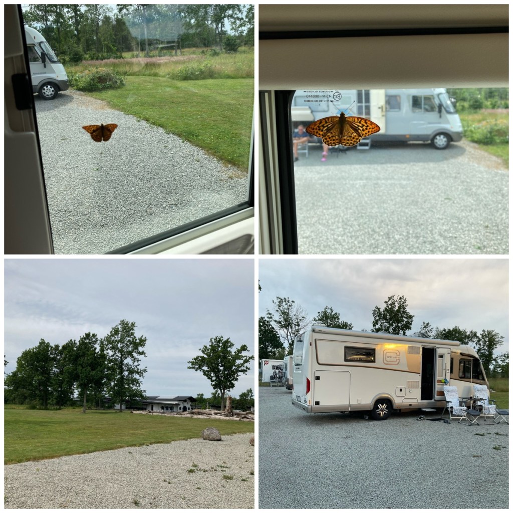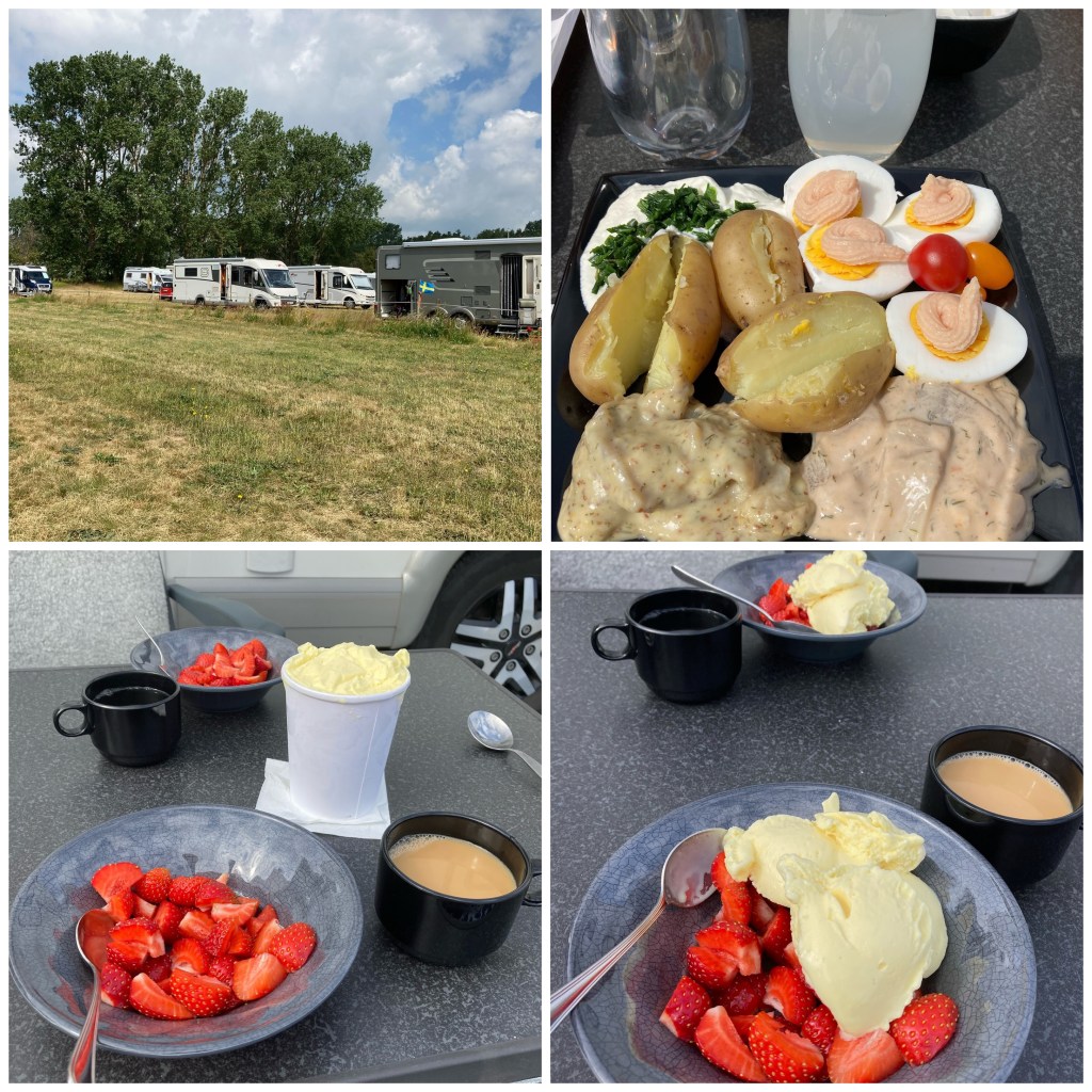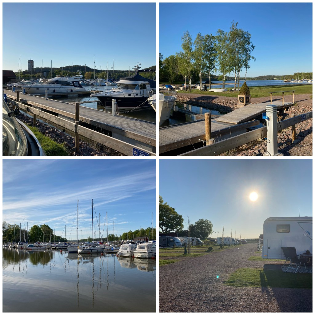 Väl i Åhus parkerades jag i dagarna fem…på First camp. De hade bokat en ställplats för mig inne på campingen men jag fick en plats närmare stugorna istället. Här skulle familjen mest hänga med barn och barnbarn och endast sova hos mig (dyr övernattningsplats för 2600kr). Men vad gör man inte för lite familjesemester 🙄😅