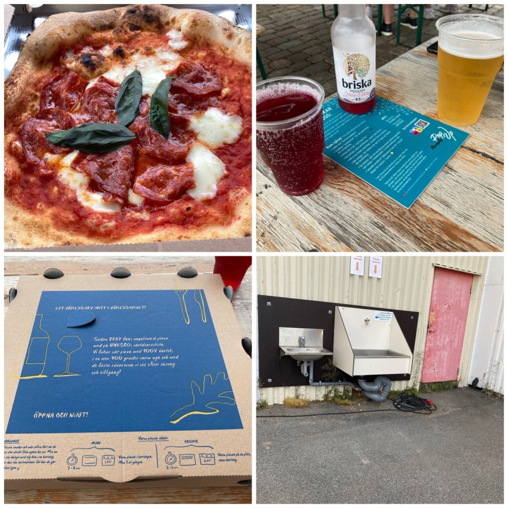 Men det fick bli ett stopp till innan… Karlskrona kändes rätt. Nära till god pizza, bra promenader i regnet. Nu fanns där dessutom toa tömning vid ställplatsen! Karlskrona har blivit ännu bättre! Men det var inte här vi skulle stanna…
