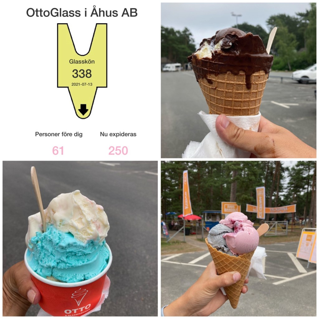 En eftermiddag skulle hela familjen ha glass från Ottos… över 60 nummer före i kön 😳. Men den som väntar på något gott… Tre kulor var… Ingen talade dock om att en kula var två skopor glass 😳🥴 Men gott var det!!!