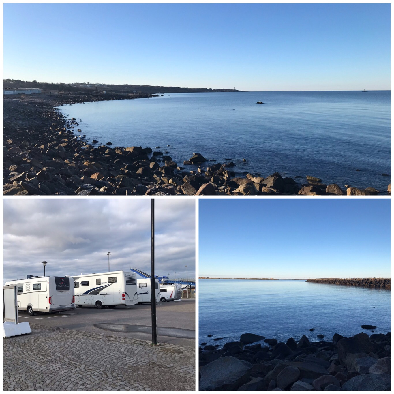 Vi kom till ställplatsen som förövrigt är gratis och utan service men har en vidunderlig utsikt med en helt underbar solnedgång! Rökeriet var stängt men vi hade medhavd lax, från lilla laxen i Kungsbacka.